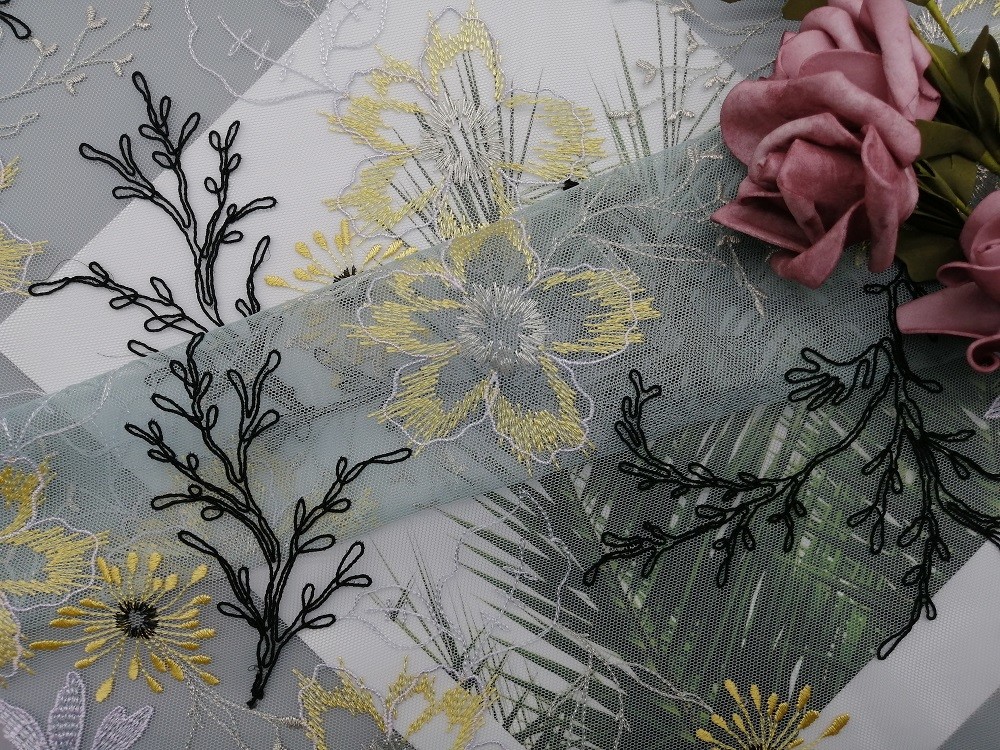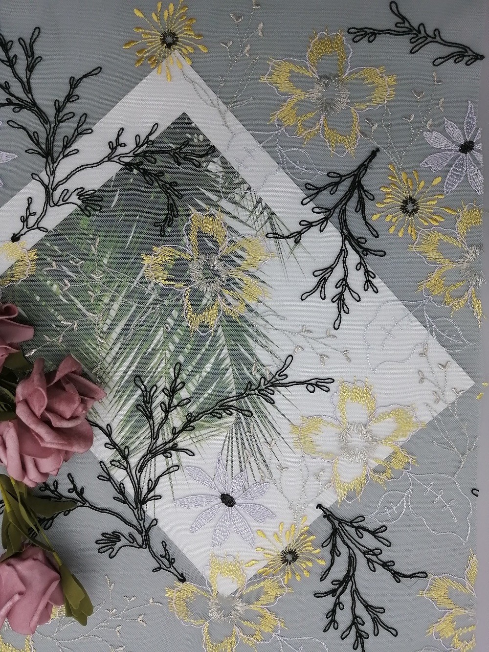 Kwiatowy haft ze sznurka Tiul Siatka Koronkowa tkanina Koronkowa Tkanina imprezowa Na sukienkę damską Sukienka damska Dekoracja Sukienka dziewczęca może spełniać wymagania OEKO-Tex Standard 100.