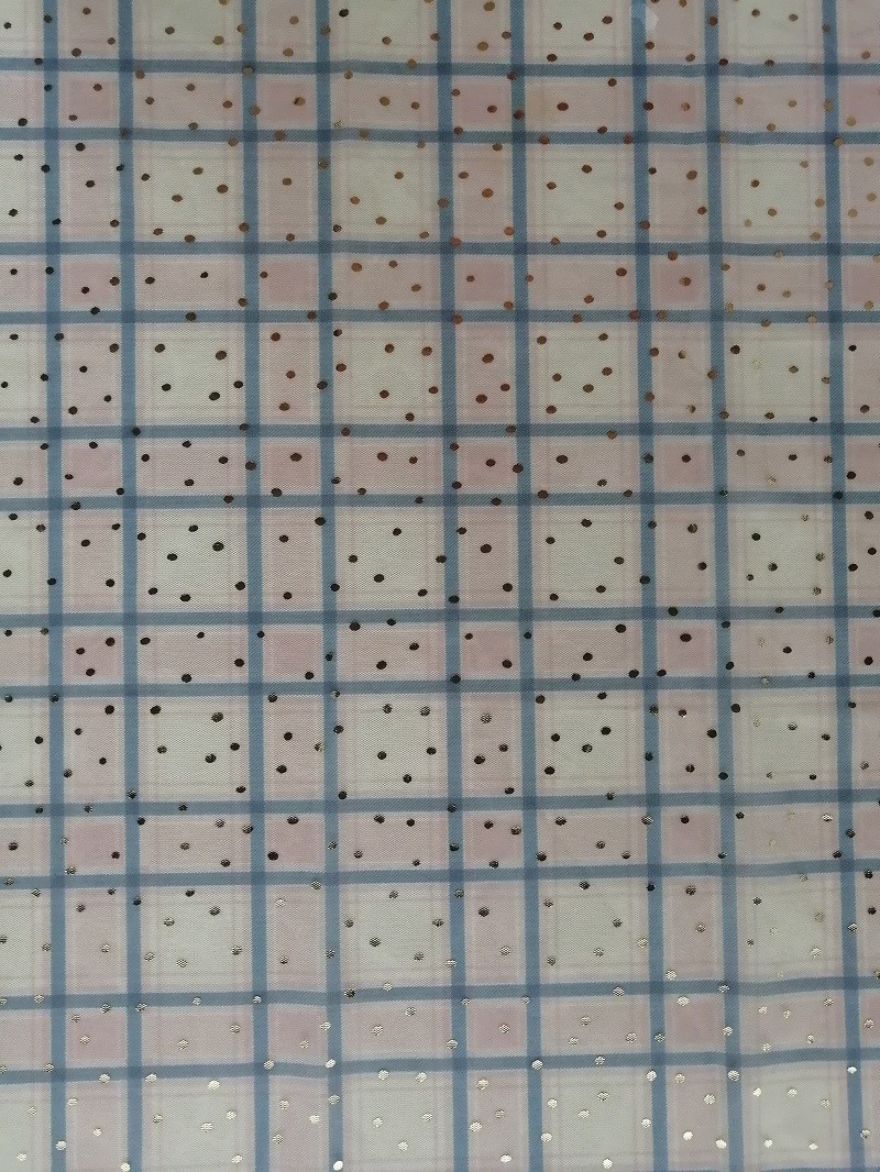 Poliestrowa kolorowa siatka z nadrukiem z folii nadaje się do sukienek damskich, spódnic, sukienek dla małych dziewczynek, tekstyliów domowych, zasłon, artykułów pościelowych, odzieży, czapek, sukien ślubnych, bluzek itp.