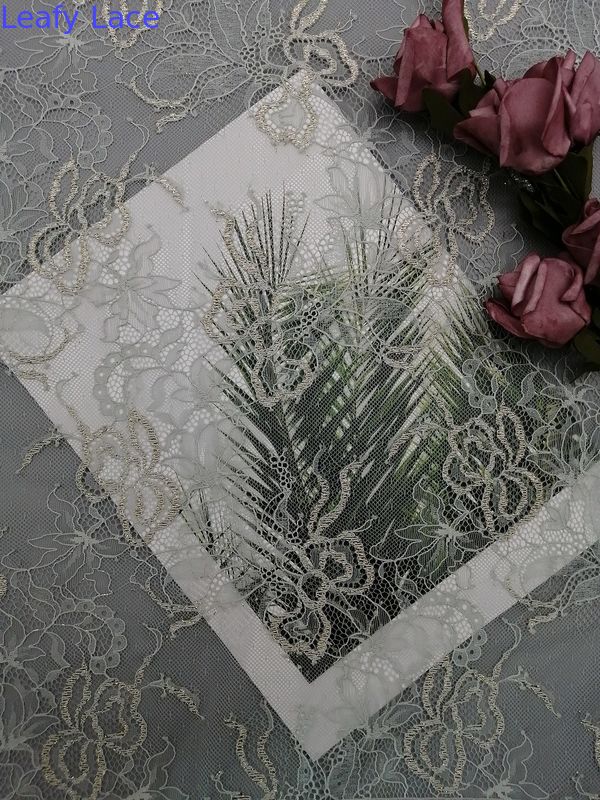 Delikatna francuska tkanina Chantilly Eyelash Metallic Lurex Lace z muszelką Tkanina Dress może spełniać wymagania OEKO-Tex Standard 100.
