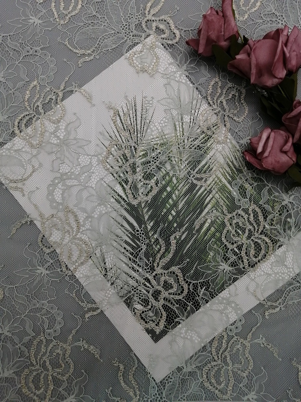 | Nazwa tkaniny: | Francuska koronka Chantilly | Metoda barwnika: | Kawałek barwnika |