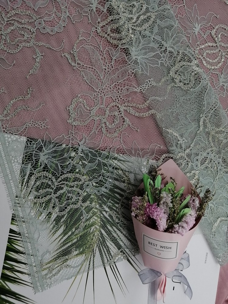 Delikatna tkanina French Chantilly Eyelash Metallic Lurex Lace z muszelkową tkaniną Specyfikacje: