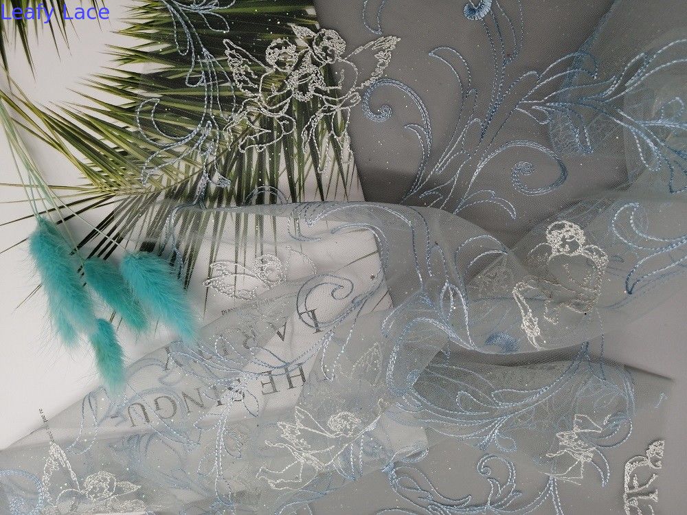 Bule Tulle Mesh Folia z nadrukiem z folii powlekanej haftem dla całych sprzedawców marek odzieżowych