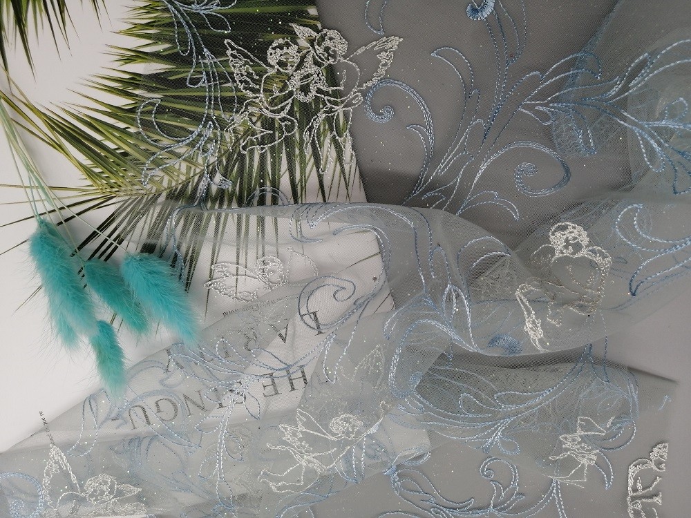 Bule Tulle Mesh Folia z nadrukiem z folii powlekanej haftem dla całych sprzedawców marek odzieżowychSpecyfikacje: