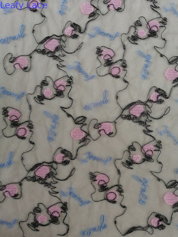 - Wielokolorowa tiulowa haftowana tkanina z haftowanej koronki z literami dla marek odzieżowych zgodnie z wymogami OEKO-Tex Standard 100.