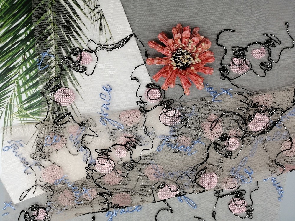 Podkreślić: | Wielobarwny haftowany tiulowy materiał siatkowy,tiulowy materiał siatkowy z literami,eko haftowana siatkowa koronkowa tkanina |