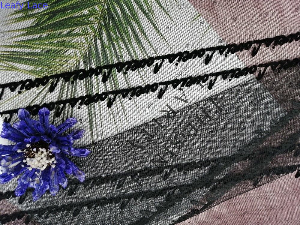 Czarna litera tiulowa siatka flokowana siateczkowa tkanina na suknię wieczorową damska odzież tekstylna domowa sukienka dla małej dziewczynkiSpecyfikacje: