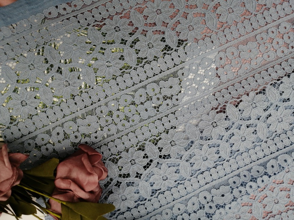 -Niebieska bawełniana tkanina 3D z kwiecistej koronki na suknię wieczorową Odzież damska Tekstylia domowe Artykuły pościelowe Sukienka małej dziewczynki może spełniać wymagania OEKO-Tex Standard 100.