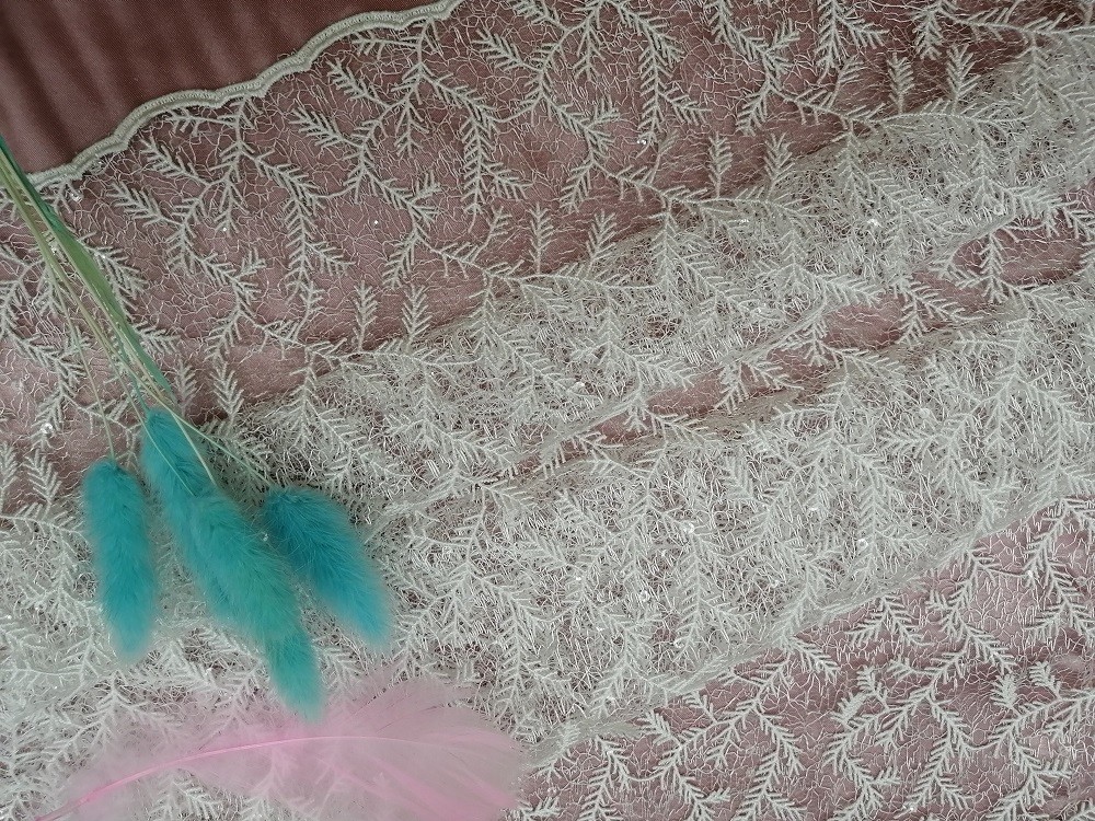 Biały delikatny, liściasty haft 3D kwiatowy koronkowy materiał na suknię wieczorową Sukienka damska Marki odzieży Suknia ślubna jest przeznaczona na tekstylia domowe, zasłony, artykuły pościelowe, odzież, czapki, suknie ślubne, bluzki, ubrania damskie, obrusy, sukienki dla małych dziewczynek, modne buty damskie, spodnie , Spodnie, szorty, kurtki itp.