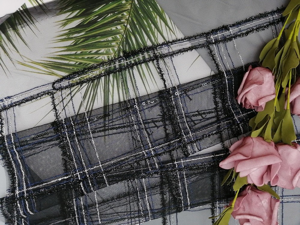 100% poliester NavyTulle Mesh Cekinowa haftowana tkanina na suknię wieczorową Sukienka damska Marki odzieży Sukienka dla małej dziewczynki może spełniać wymagania OEKO-Tex Standard 100.