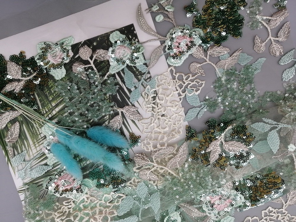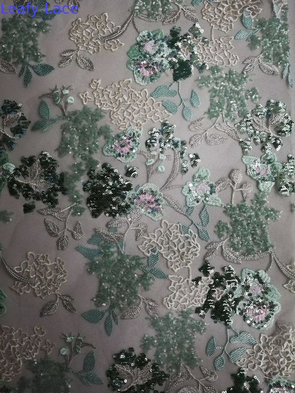 Zielona kwiecista cekinowa haftowana tkanina Tkanina imprezowa na wieczorową sukienkę Sukienka damska Marki odzieży Sukienka małej dziewczynki może spełnić wymagania OEKO-Tex Standard 100.