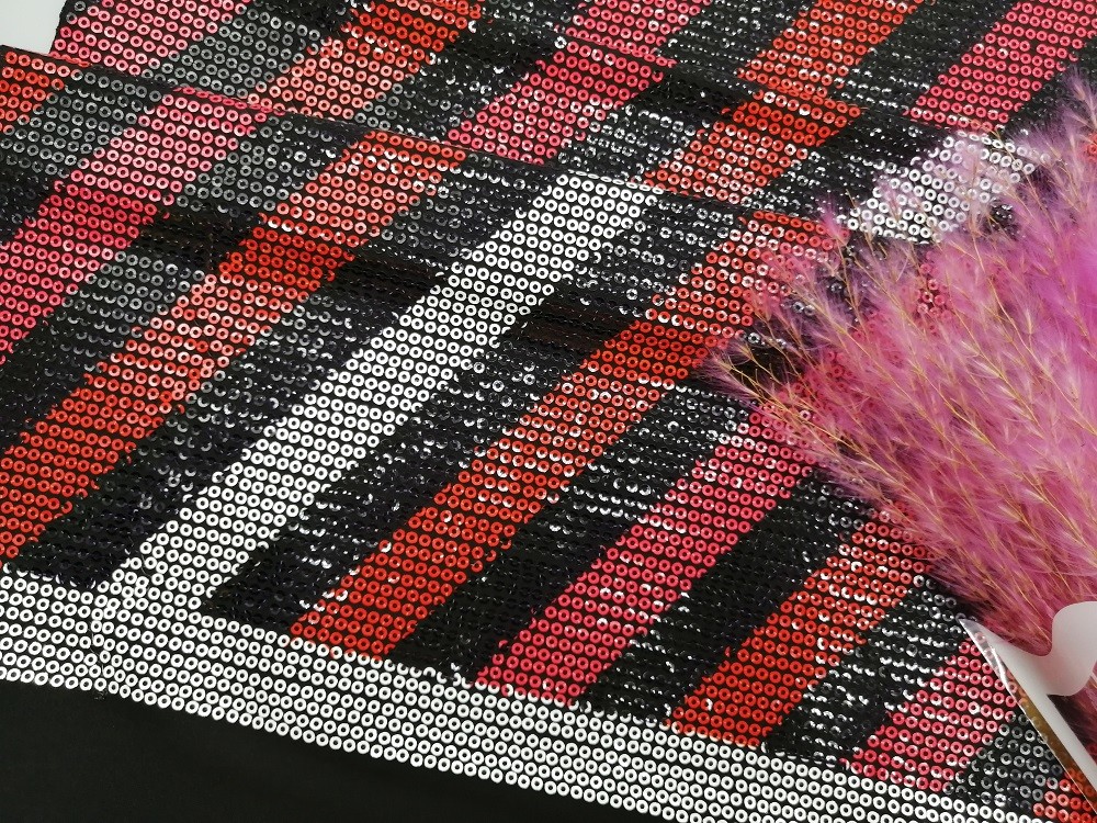 Kolorowy, liniowy drukowany cekinowy haft drukowany koronkowy materiał na imprezę Specyfikacje: