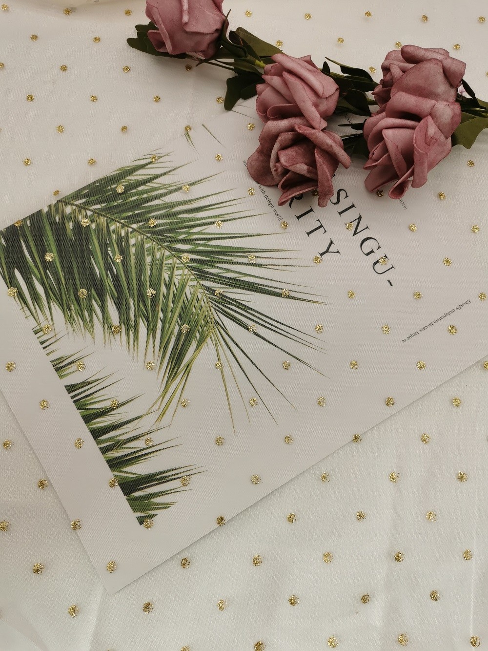 - Kość słoniowa w kropki metaliczna brokatowa tiulowa siatka z nadrukiem z folii na wieczorową sukienkę Obuwie damskie Sukienka dla małej dziewczynki może spełniać wymagania OEKO-Tex Standard 100.