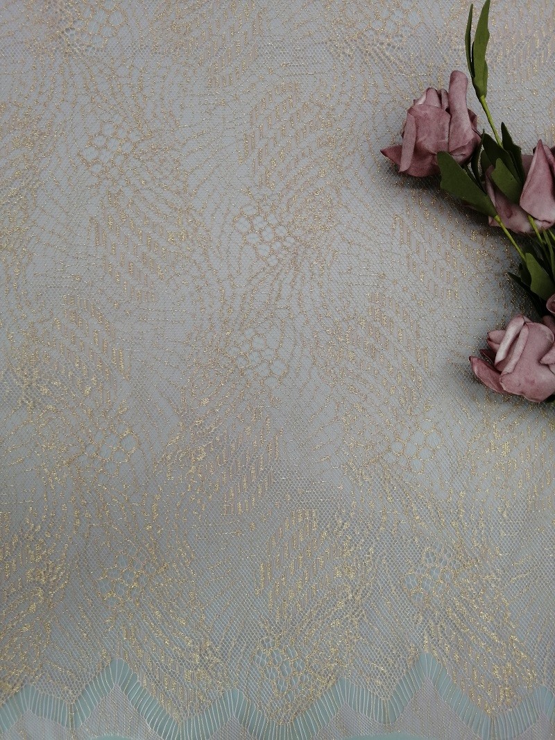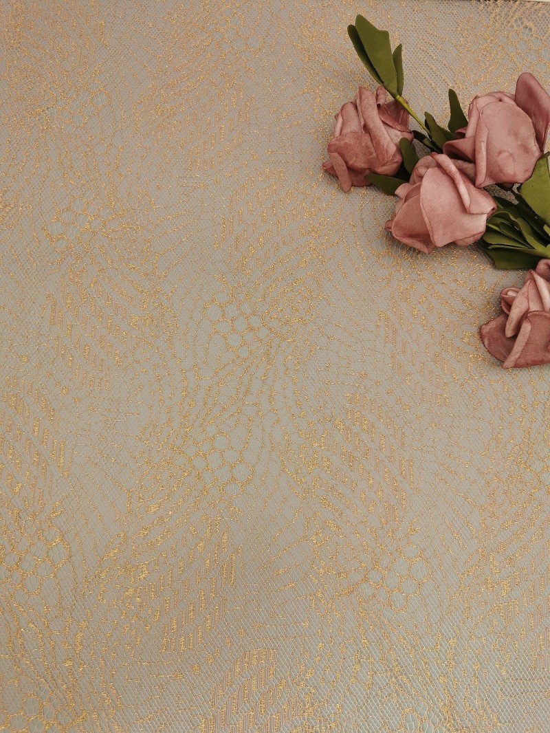 | Szerokość: | 125 cm | Nazwa produkcji: | Tkanina z metalicznej koronki |