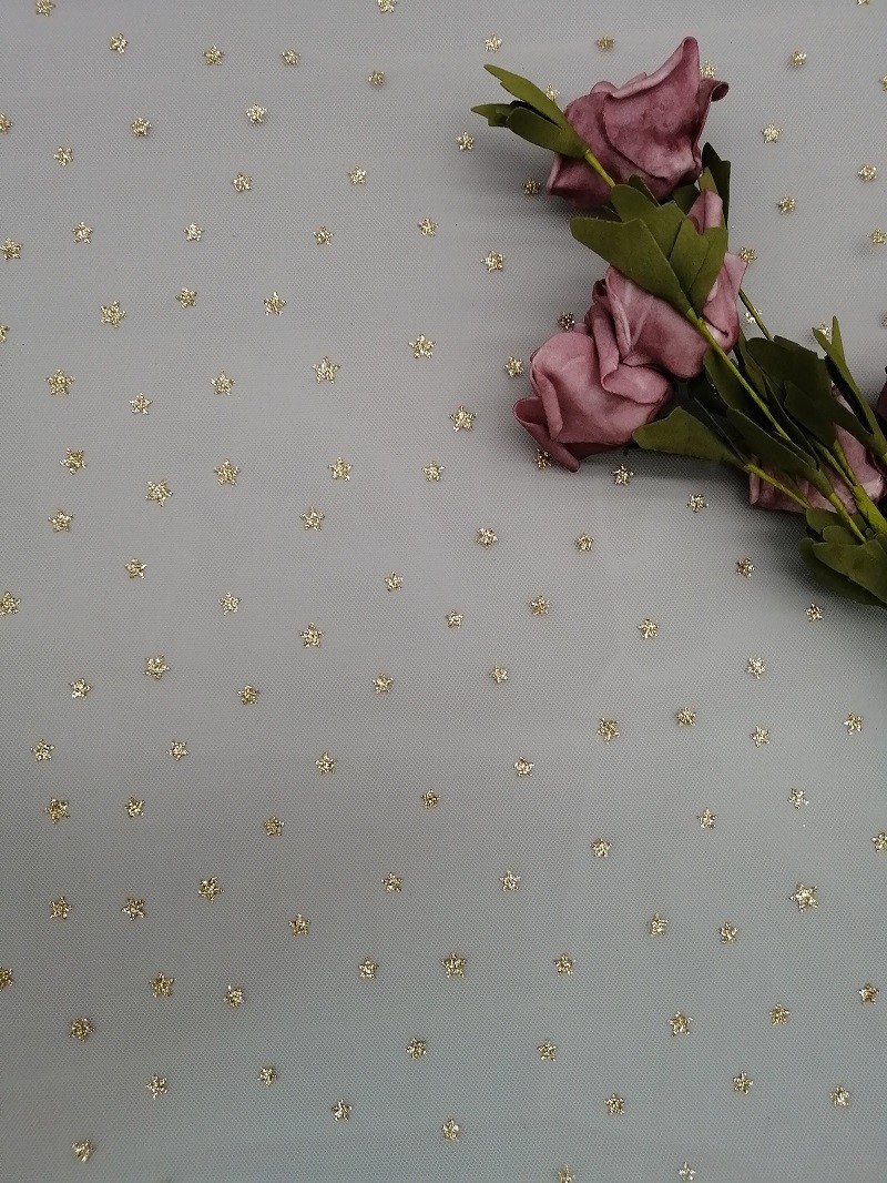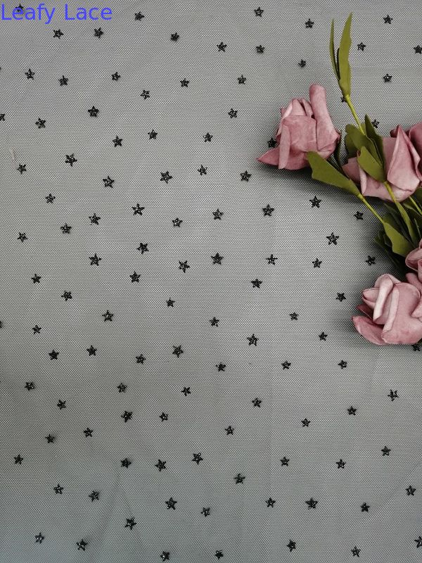 -Metaliczny kształt gwiazdy Koronkowa tiulowa tkanina siatkowa Kobiety Sukienka z nadrukiem foliowym Powłoka Tiul może spełnić wymagania OEKO-Tex Standard 100.