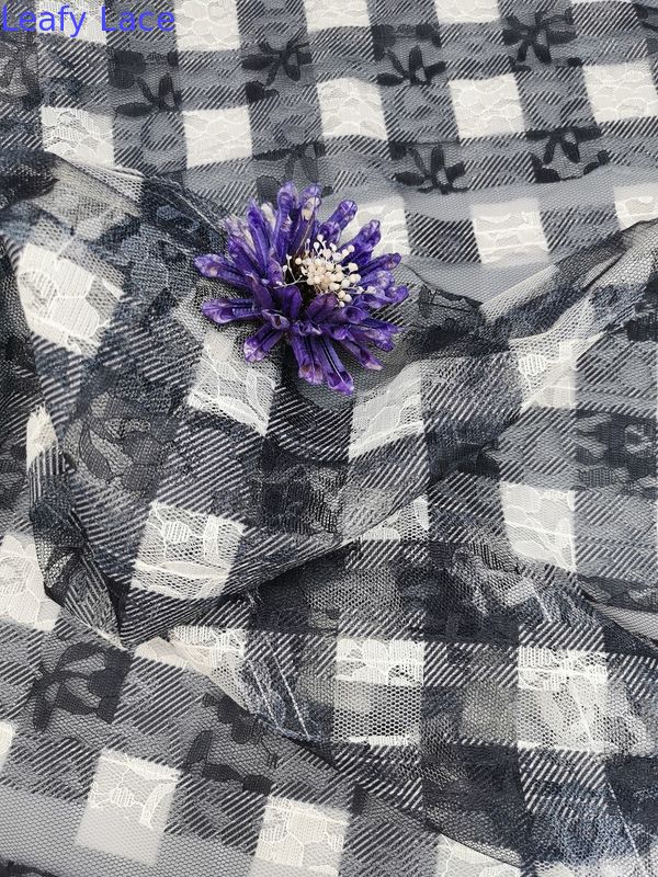 Koronka w kratę z nadrukiem Koronka Tkanina w kratkę Haftowana koronka w paskiSpecyfikacje: