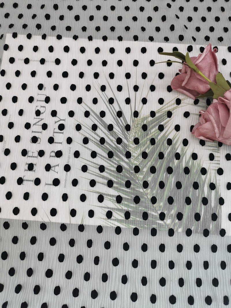 - Koronkowa plisowana koronkowa plisowana tkanina w kropki z tiulu Crinkle Mesh flokowana Mesh może spełnić wymagania OEKO-Tex Standard 100.