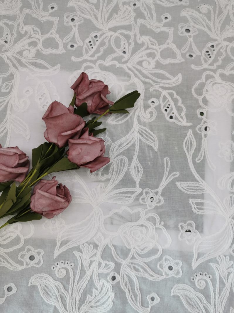 | Szerokość: | 125 cm | Nazwa produkcji: | Haftowana tkanina z oczkami |
