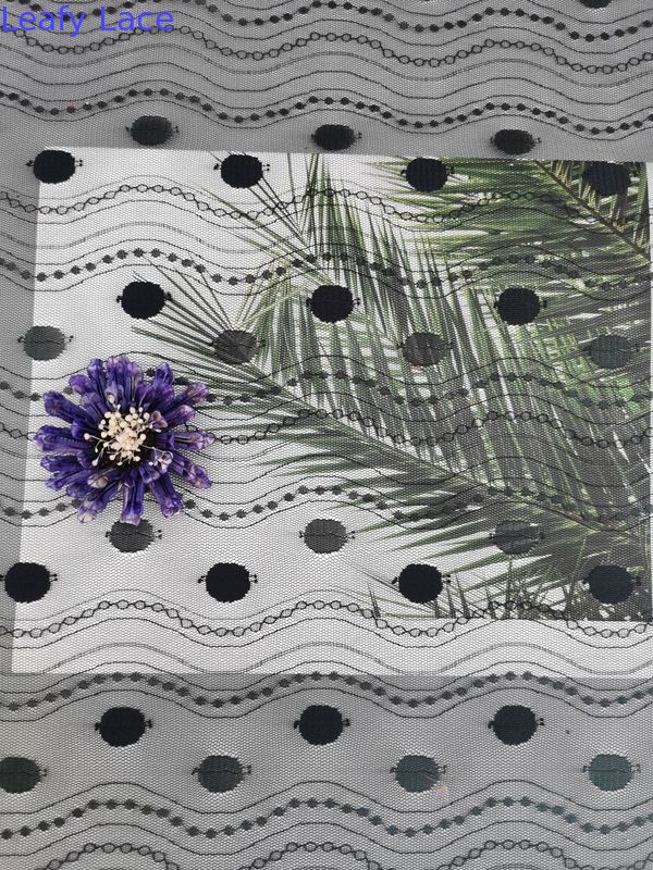 -Liniowa koronka z koronki poliestrowej Wykończenie z czarnej tiulu może spełnić wymagania OEKO-Tex Standard 100.