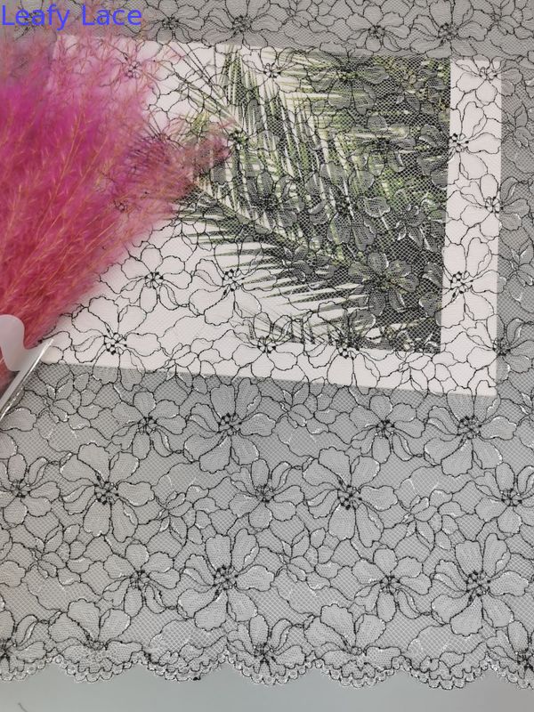 -Cała szwajcarska koronka kwiatowa Koronka poliestrowa Wykończenie Srebrne kontrastowe hafty może spełnić wymagania OEKO-Tex Standard 100.