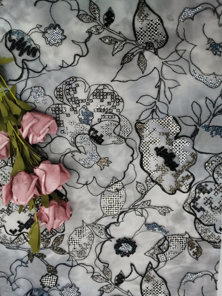 | Podkreślić: | Tkanina haftowana cekinami 125 CM,haftowana tkanina z cekinami z siatki,kolorowa koronka kwiatowa OEKO TEX |