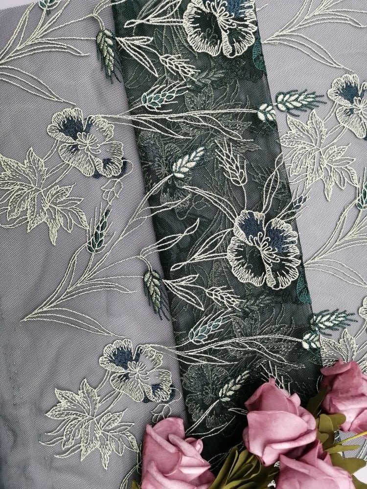 Szerokość: | 125 cm | Nazwa produkcji: | Haftowana tiulowa tkanina z siateczki |