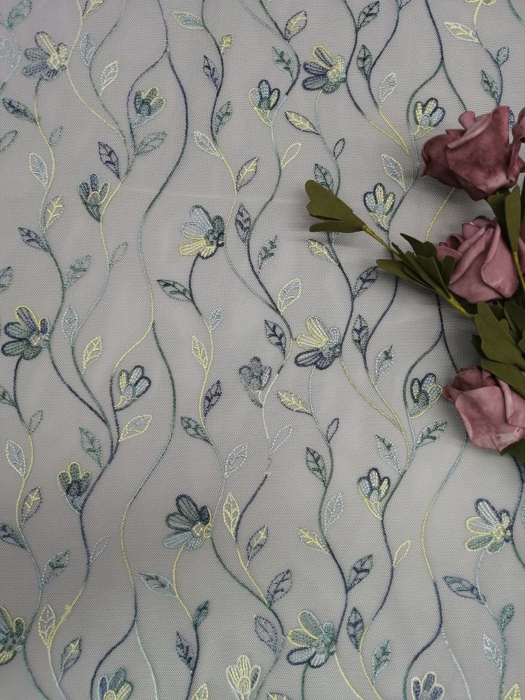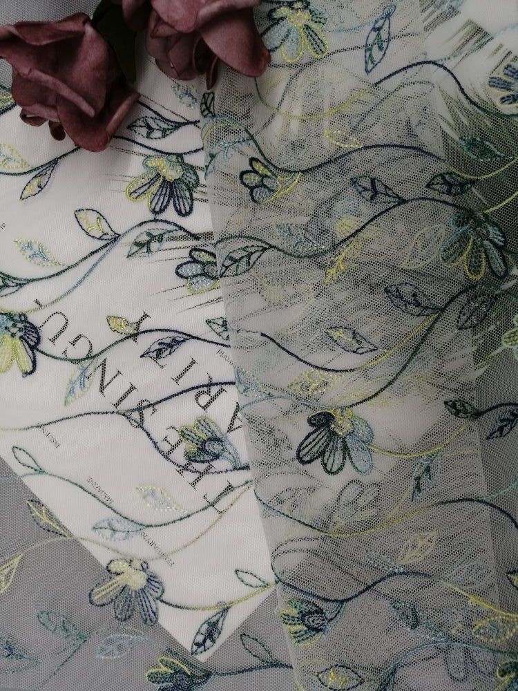 Mała Skala Kwiatowa Koronkowa Tiulowa Kolorowa Haftowana Tkanina Lady Dress Textile Dane techniczne: