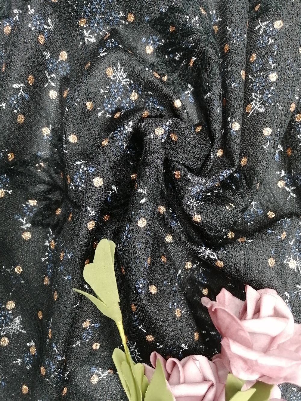 -Grafika: Jest to ciężki projekt graficzny.Na tym projekcie znajdują się 4 grafiki, po pierwsze drukujemy siatkową tkaninę podkładową, po drugie łączymy siatkę i koronkę ze sobą, po trzecie wykonujemy haft na klejonej tkaninie, na koniec wykonujemy nadruk foliowy na tkaninie w celu stworzenia luksusowego efektu i fantastyczny wygląd.