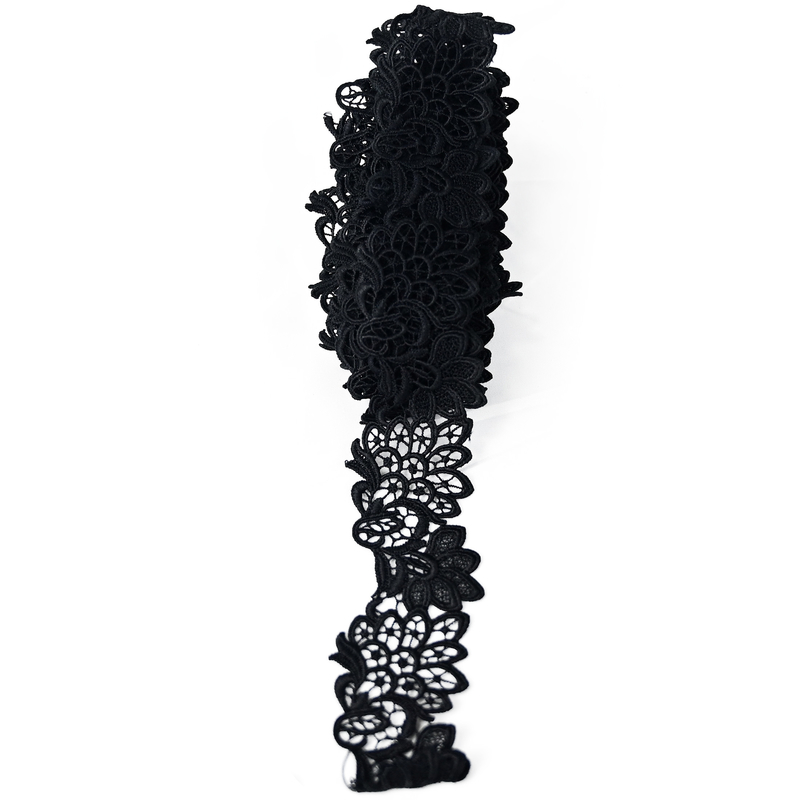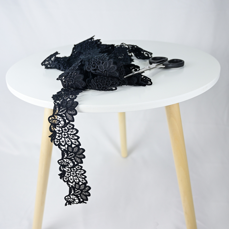 Koronkowa wstążka do szycia haftów jest barwiona na dowolny kolor ekologicznymi barwnikami. Delikatny kwiatowy wzór kształtuje całość, która jest klasyczna i modna.