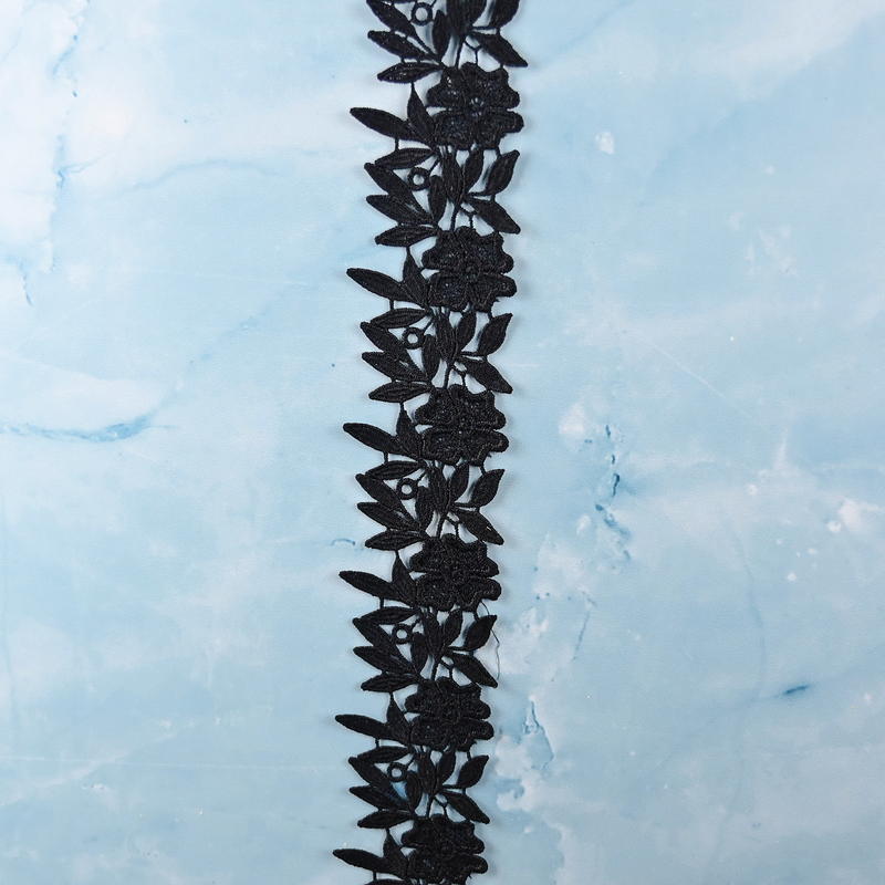 -2,3 "Czarna poliestrowa koronka z zapiekanym brzegiem Koronkowa wstążka szydełkowa haft na ubrania może spełniać wymagania normy OEKO-Tex 100 .