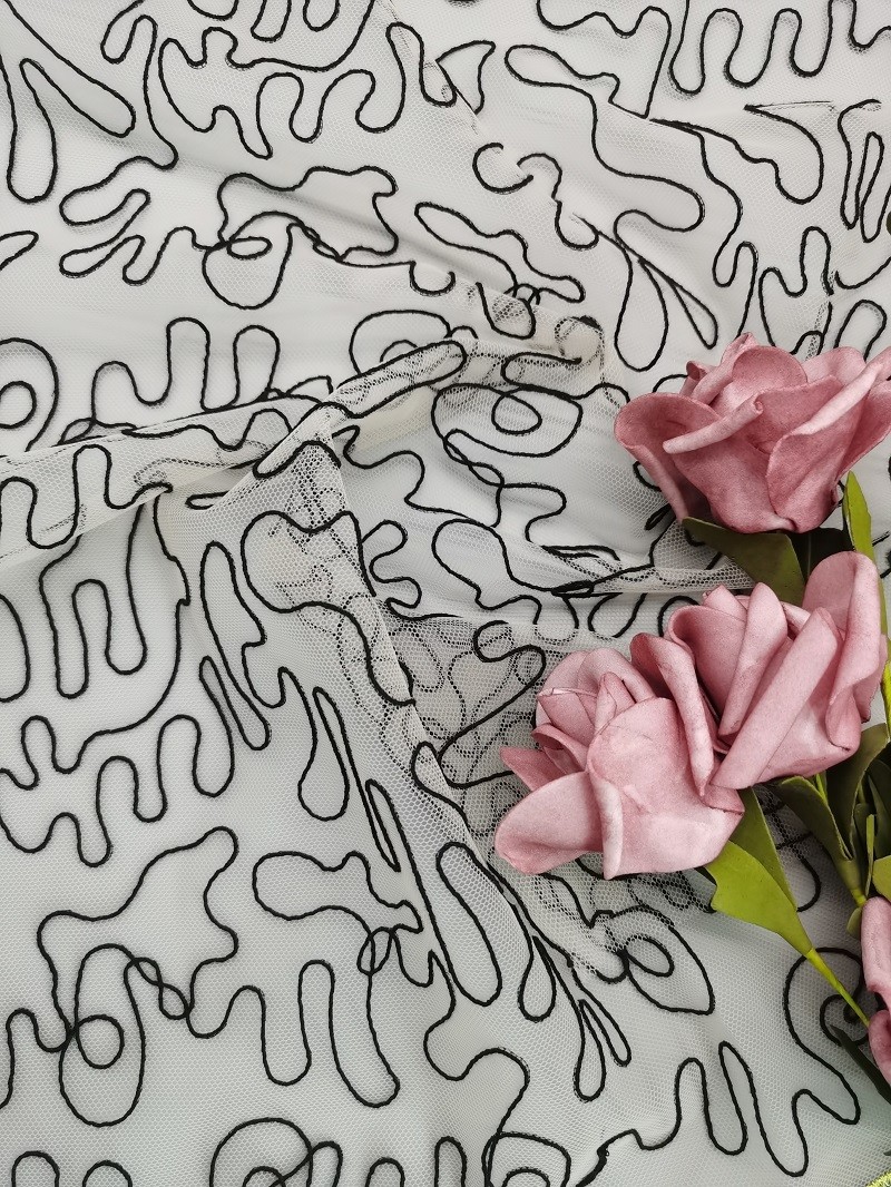 Biała haftowana koronkowa tkanina Tiulowa siateczkowa haftowana suknia ślubna Tkanina: