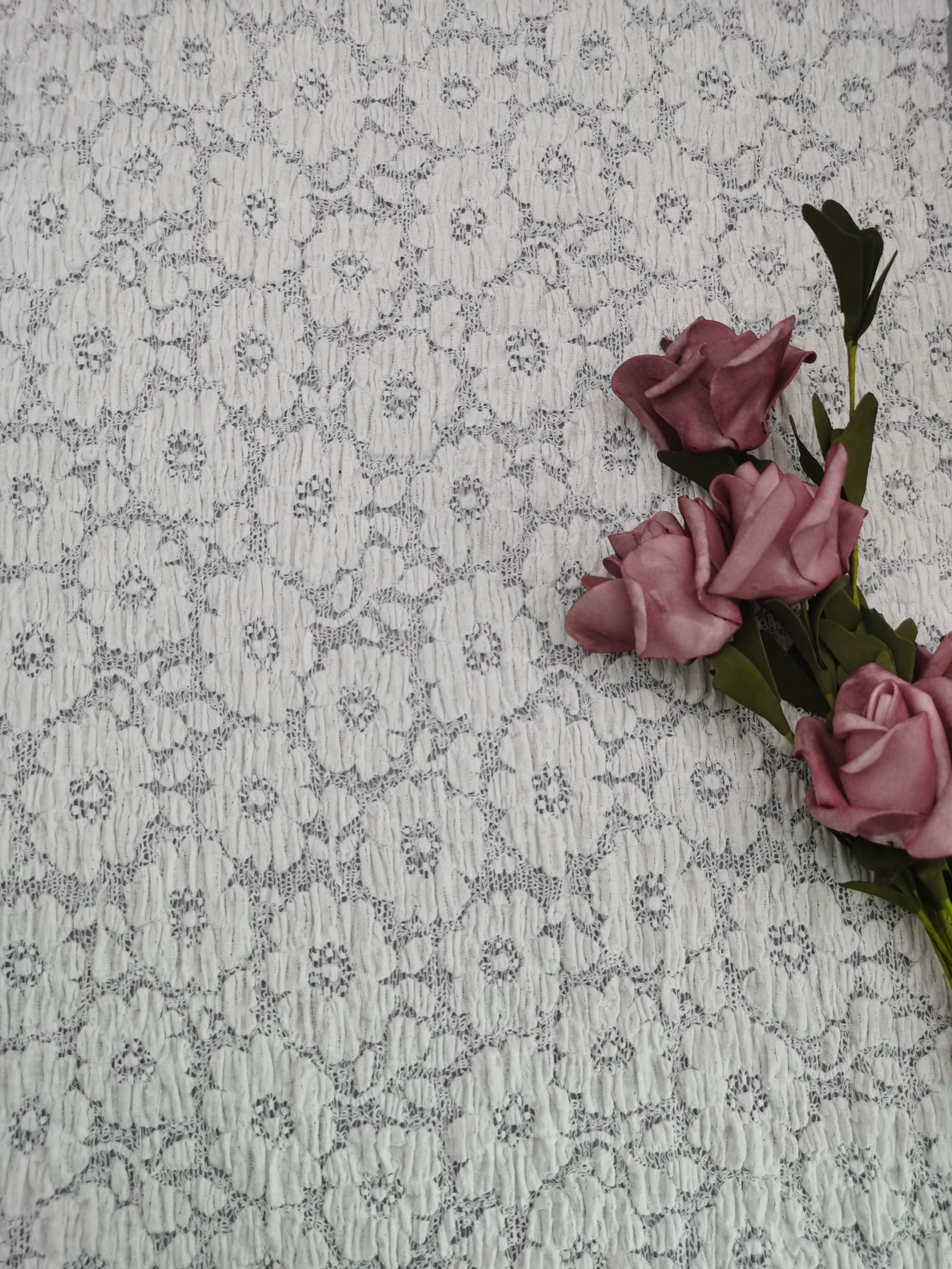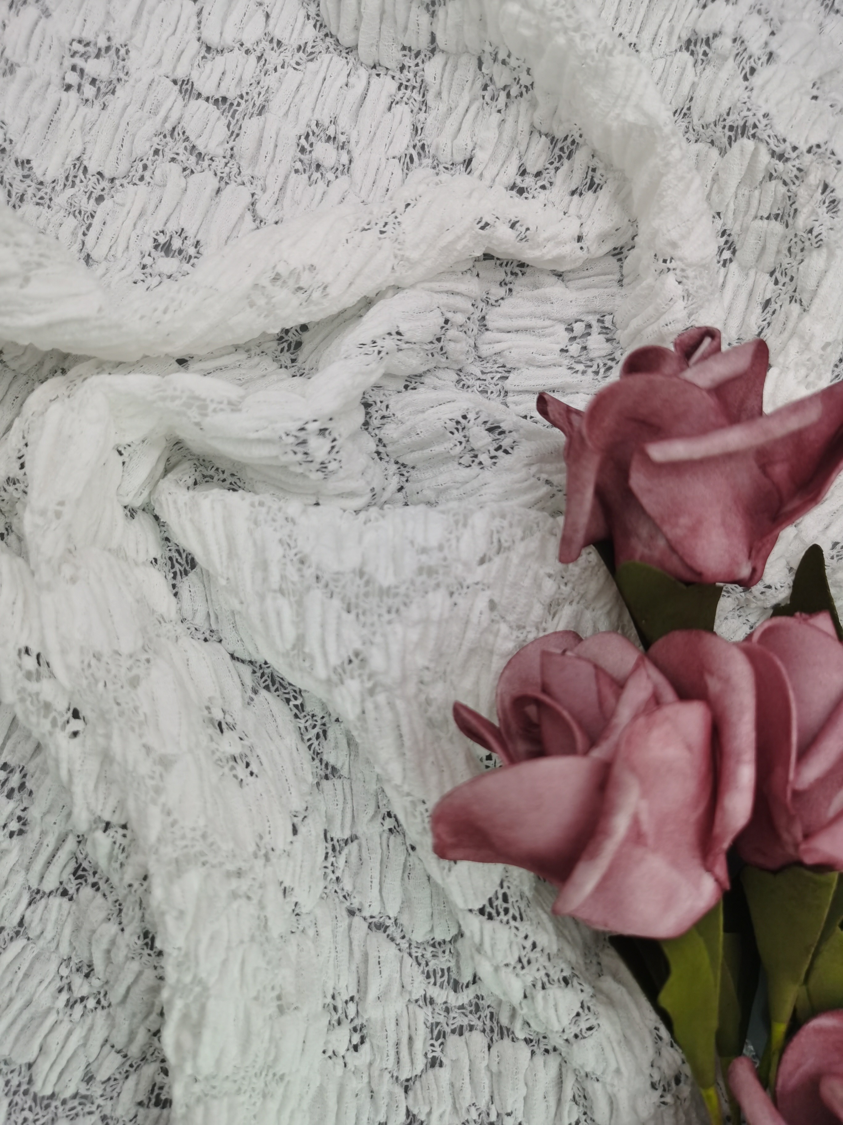 49 ‰ biały kolor Tkanina z koronkami kwiatowymi Spandex dla odzieży damskiejjest dla tekstylnych artykułów domowych, zasłon, artykułów sypialnych, odzieży, kapeluszy, sukni ślubnych, bluz, ubrań damskich, obrusów stołowych, sukienek dla małych dziewczynek, modnych butów dla kobiet, spodni, spodni, szortów,Włosy, itp.