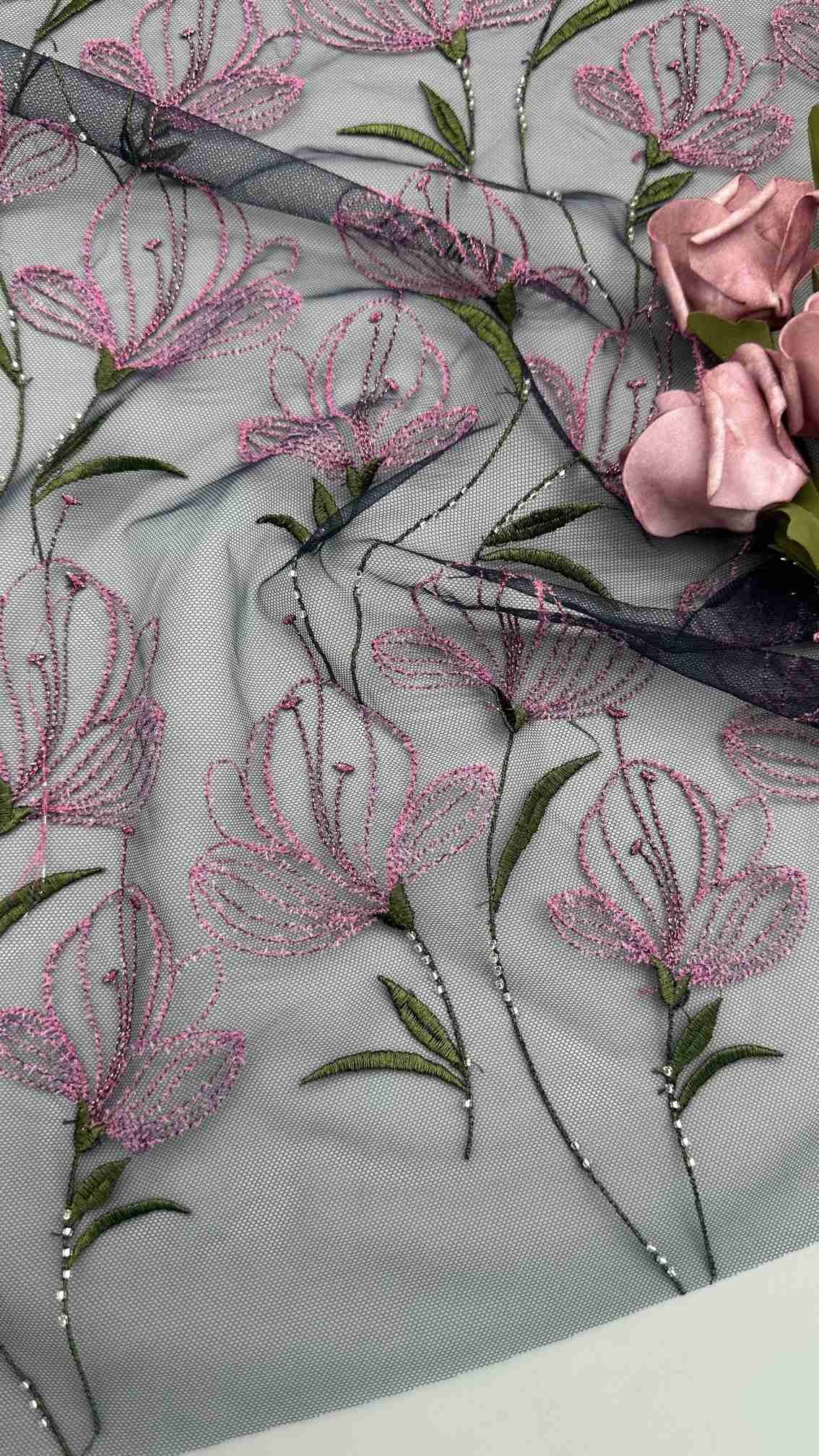 | Nazwa produkcji: | Tkanina haftowana w kolorze tulipana | Cechy: | Wyroby włókiennicze do sukni damskiej |