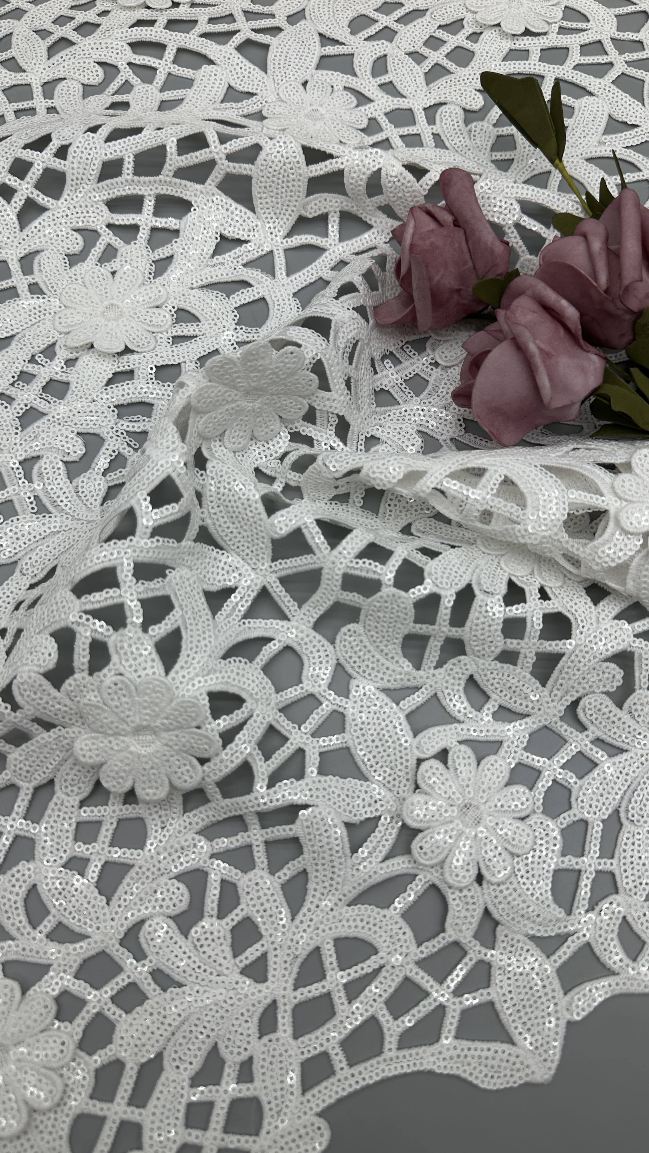 | Nazwa produktu: | Koronka liściasta | Materiał: | Cekin/koronka/haft |