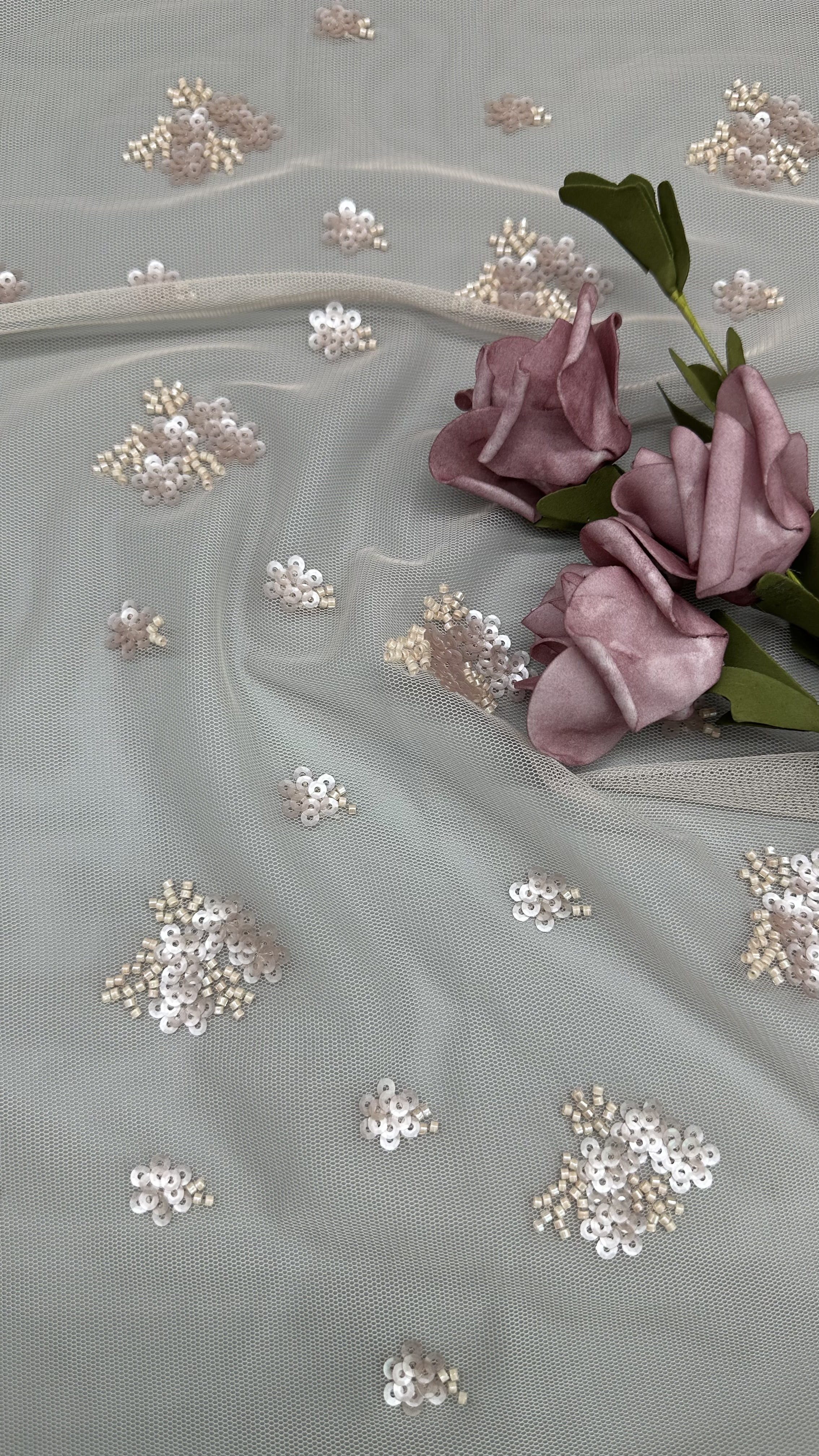 Nazwa produktu: Koronka liściasta Materiał: Cekin/koronka/haft