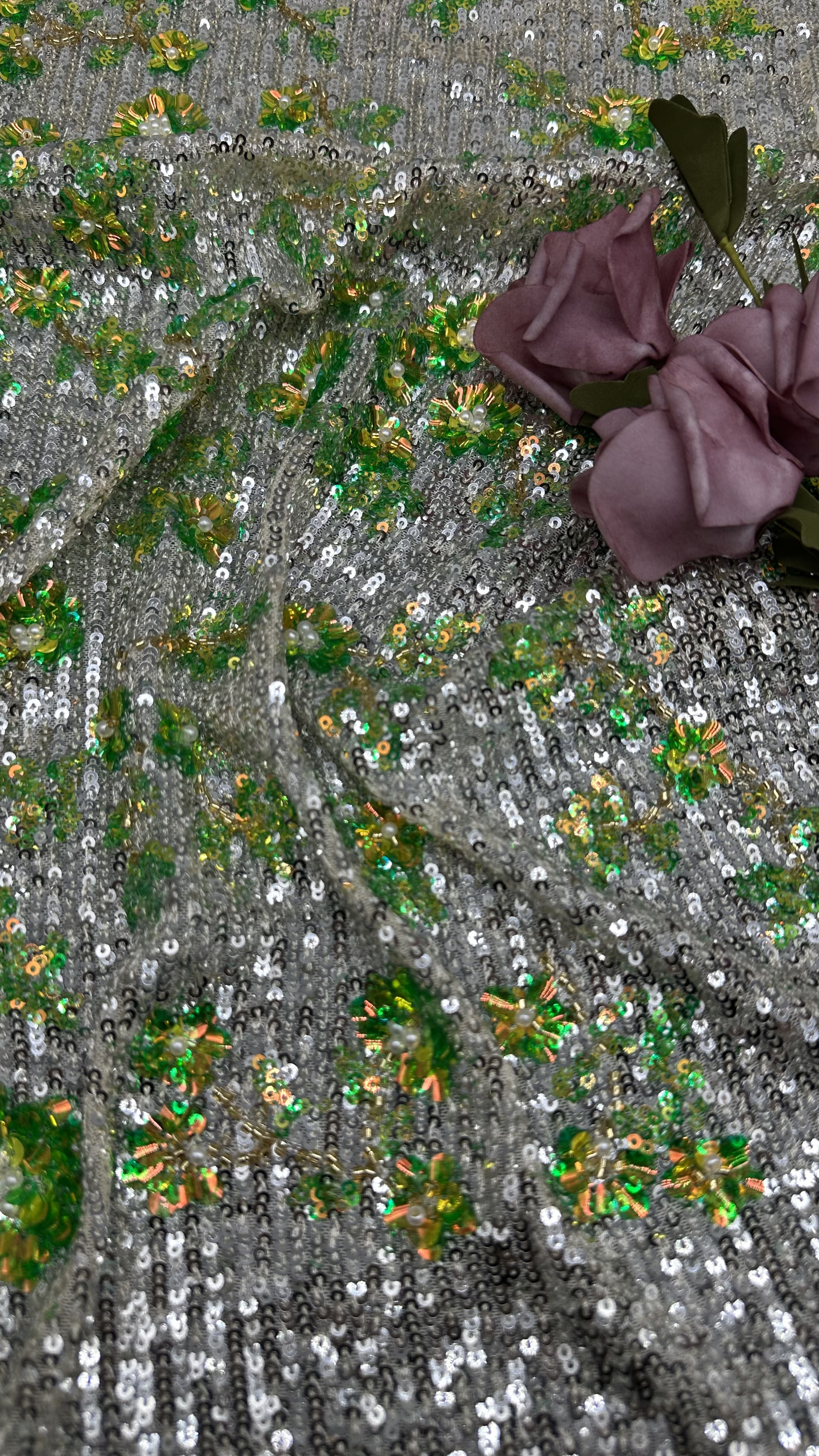 | Podkreślić: | z tkaniny wyszywanej z zielonej,białej sekwini,Tkanina z dzianin |