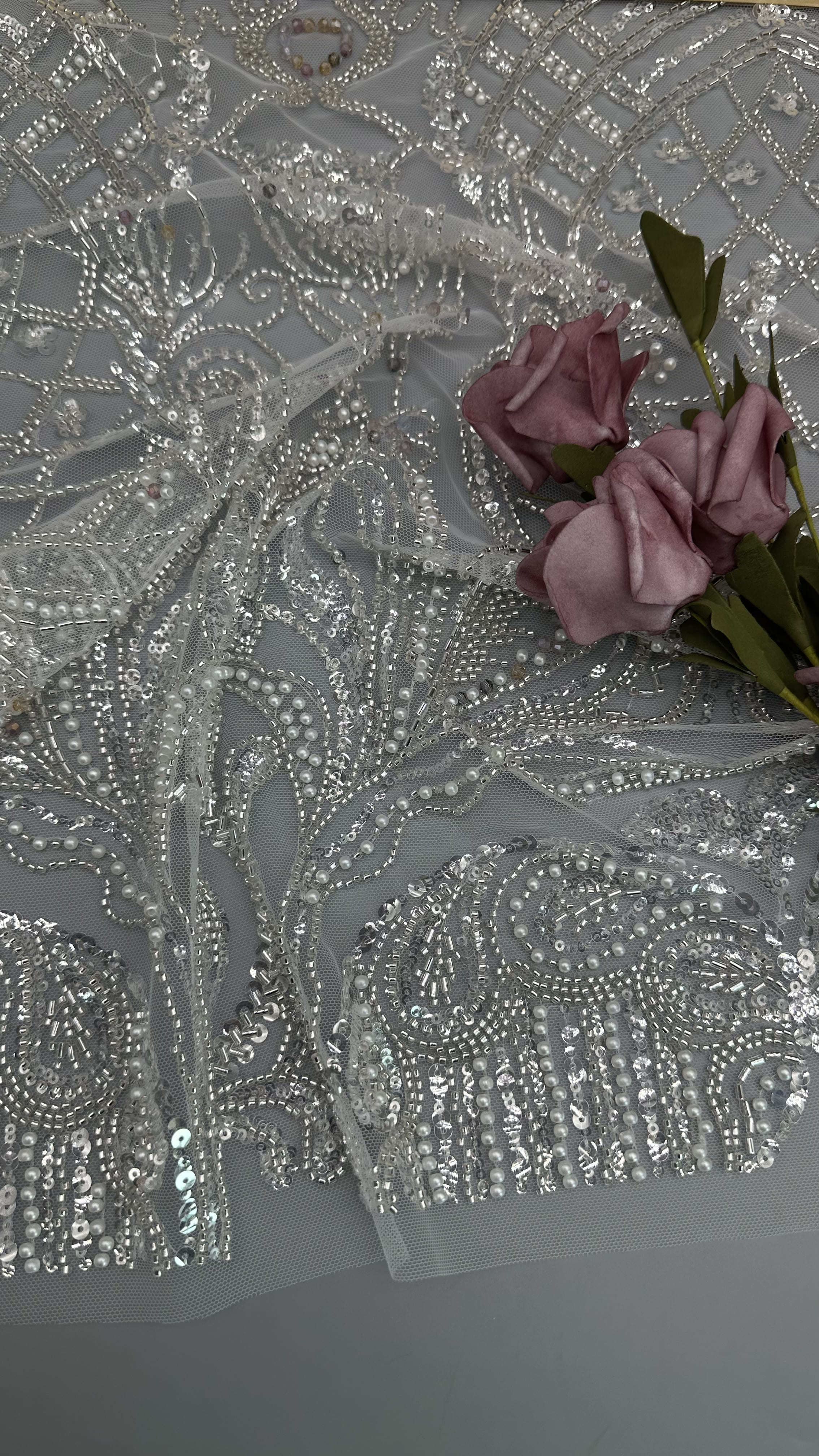 | Podkreślić: | Tkanina z pereł wyświetlanej koronką,Tkanina z koralowanych perłowych sznurków |