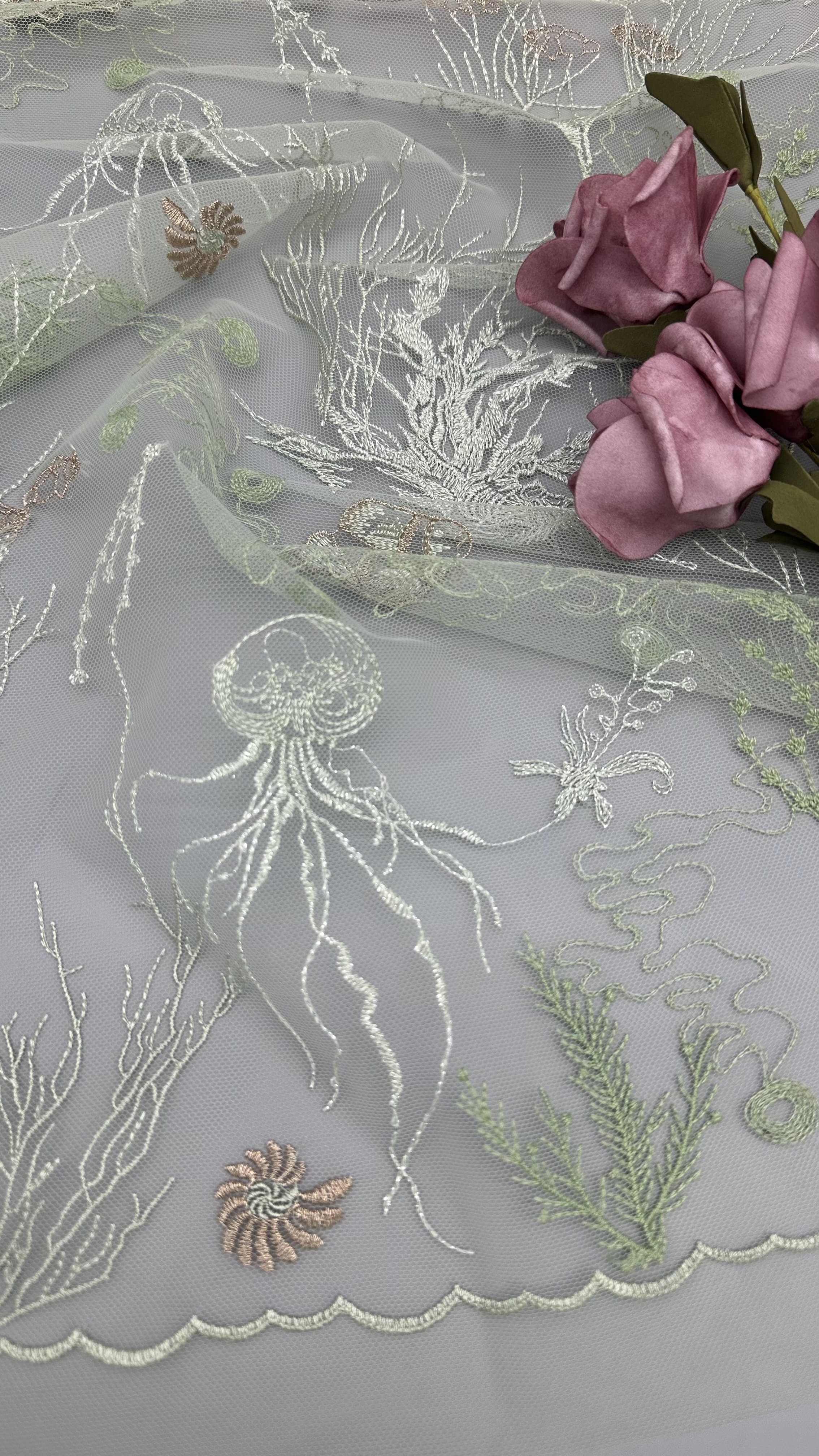 | Podkreślić: | embroidered lace fabric for dresses,luxury sea embroidered lace breather,women's evening gown lace fabric |