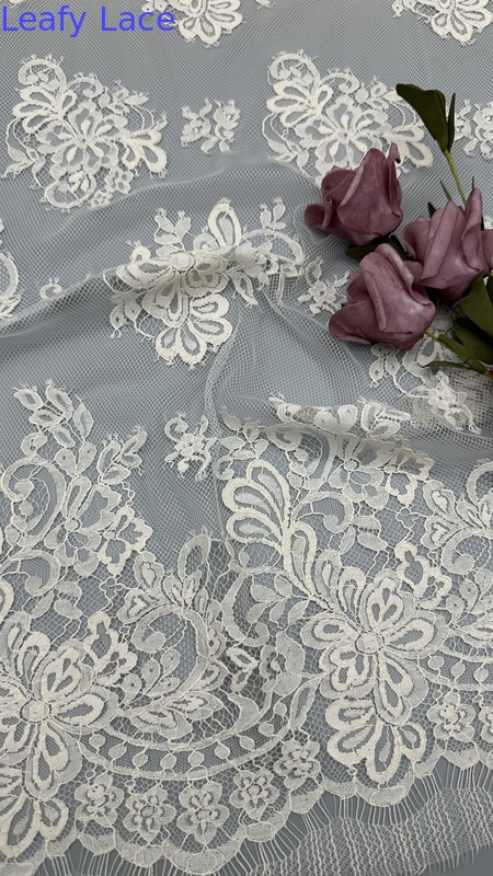 Sztuczka z sztuczkami z delikatnych, liściastych motywów jest popularnym wyborem sukni ślubnych i imprezowych, oferując elegancję, teksturę i skomplikowane szczegóły.Technologia produkcji obejmuje połączenie tradycyjnego rzemiosła i nowoczesnych innowacji tekstylnych.