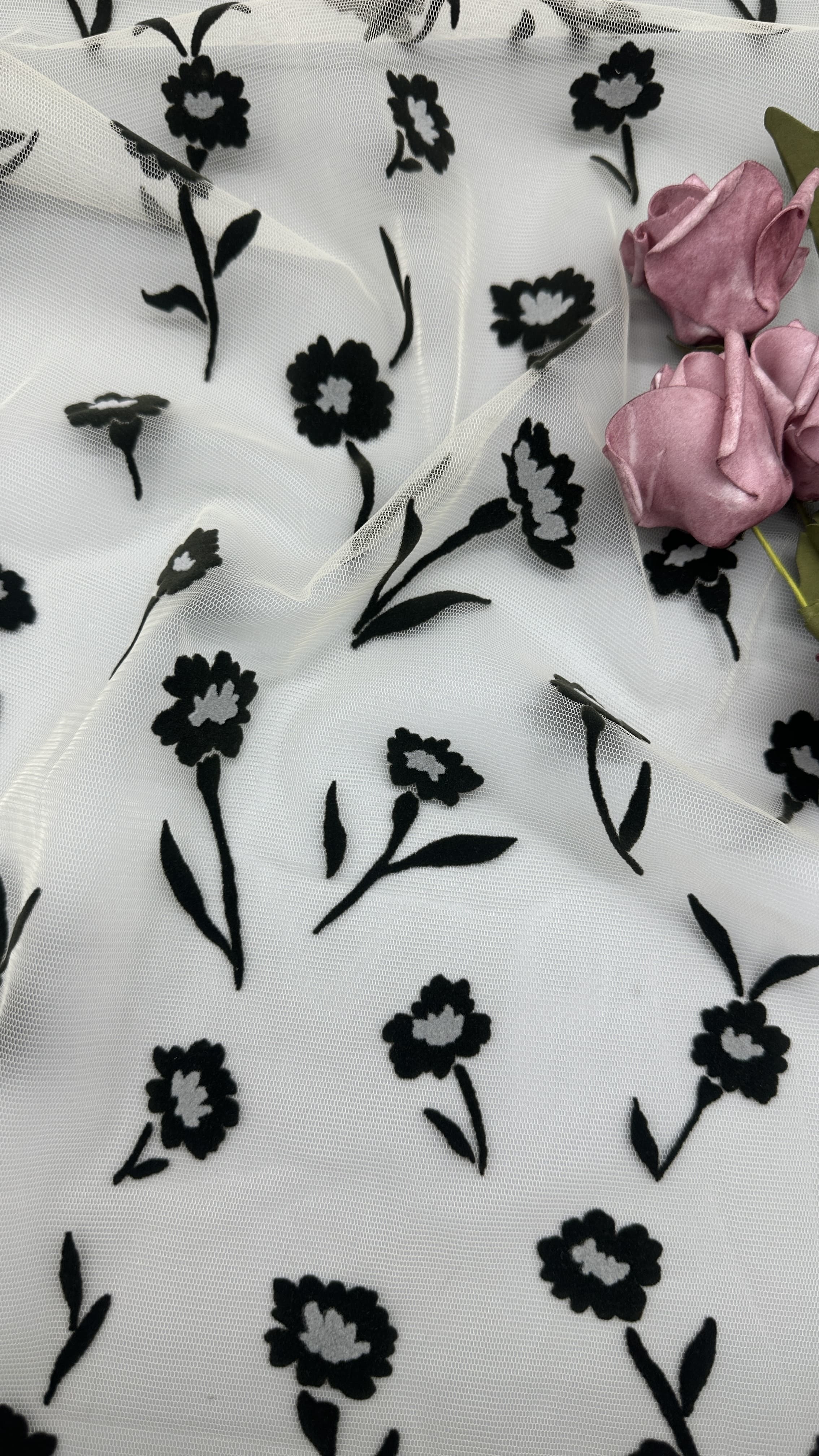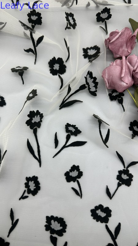| Podkreślić: | flocked mesh lace fabric,customized flower design fabric,elegant flocked mesh fabric |